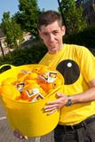 Here's a huge-gigantic rubber duck by artist Florentijn Hofman. It is 12 x 14 x 16 meters rubber duck to be set in different locations in the world. The photos shows that the duck is in the harbor of Hasselt, Belgium.